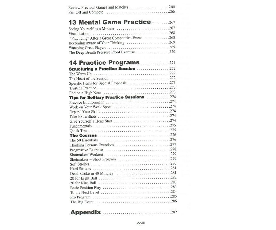 Take your game to the next level and beyond with Capelle’s Practicing Pool. From the author of the bestselling classic “Play Your Best Pool” comes Phil Capelle’s latest book. Featuring a special “Fast Start” section for new players, this new book covers shotmaking, aiming, position and pattern play, safety play, kicking, break shots and much more. Over 290 pages packed with diagrams and illustrations.