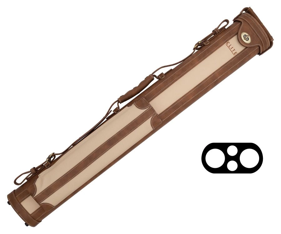 Made of 2 tone brown leather and vinyl, with white stitching, this case looks sweet! It has carrying handle on the top and side and a shoulder strap that can be fixed to the handle to keep it out of the way.