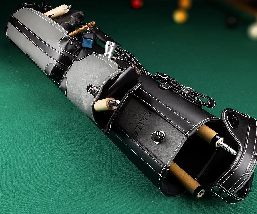 Elite 3 butts &7 shafts grey cue case with two carrying handles and adjustable strap.